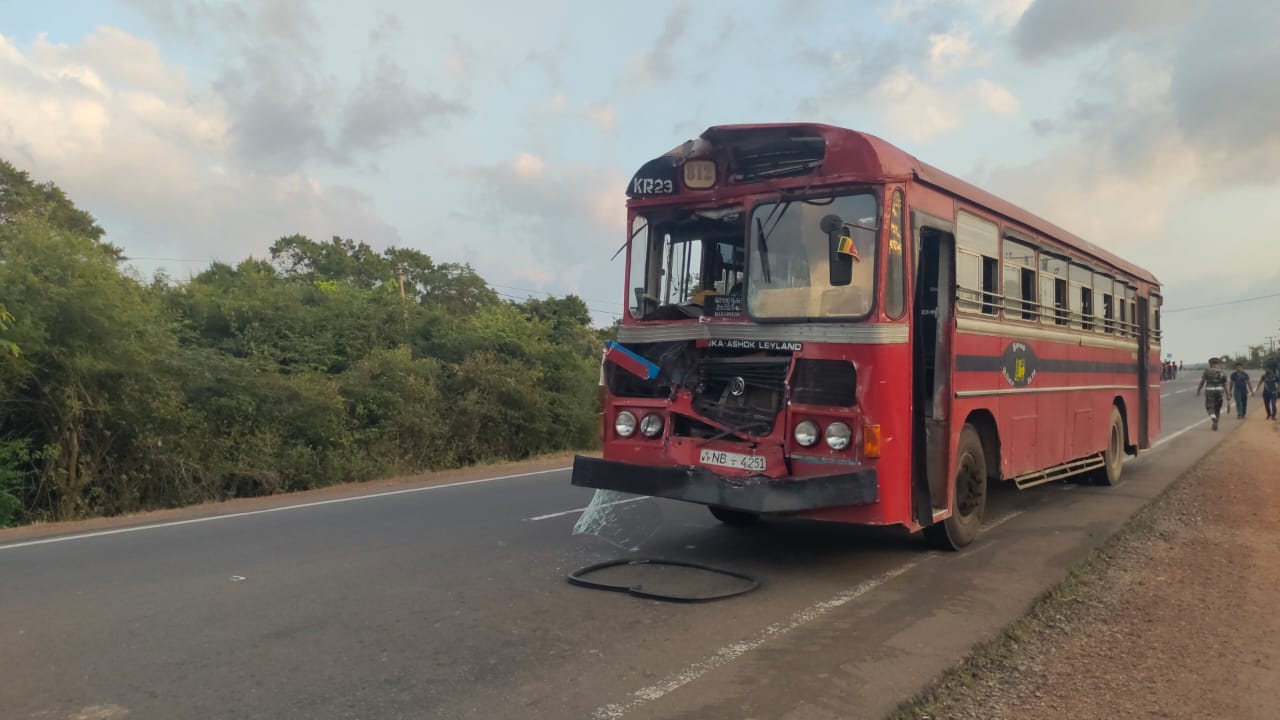 துணுக்காயிலிருந்து காரைநகர் நோக்கி பயணித்த அரச பேருந்து எதிரே பயணித்த இராணுவ ரக் வாகனத்துடன் நேருக்கு நேர் மோதியுள்ளது.
