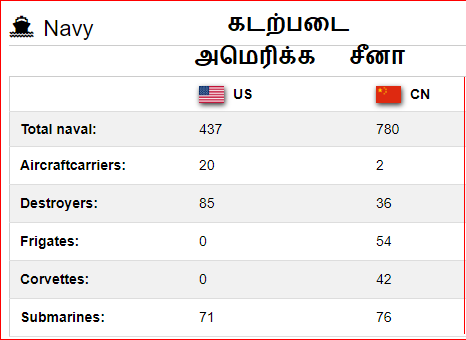 அப்போது மற்ற முன்னணி நாடுகள் ஒரு போர் செய்து சலித்துப் போயிருந்தன. இப்போது அந்த மாதிரியான நிலையில் சீனா இல்லை. படை, குடி, கூழ், ஆகியவை சீனாவிடம் சிறப்பாக இருந்தாலும் நட்பும் அரணும் அமெரிக்காவிற்கு இருப்பது போல் சீனாவிற்கு இல்லை.