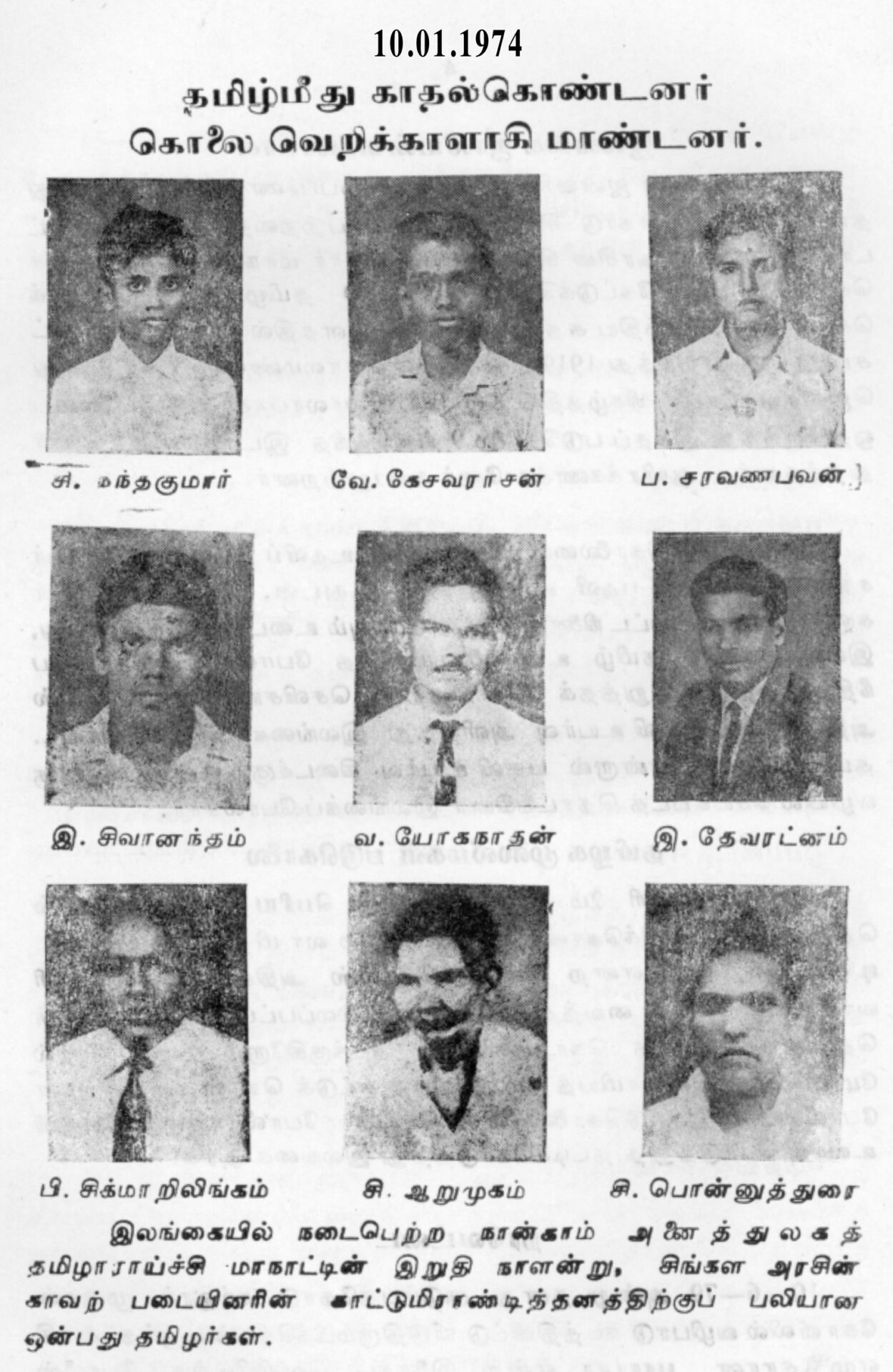 10.01.1974 அன்று தமிழாராய்ச்சி மாநாட்டில் கொல்லப்பட்டோர் விபரம்: