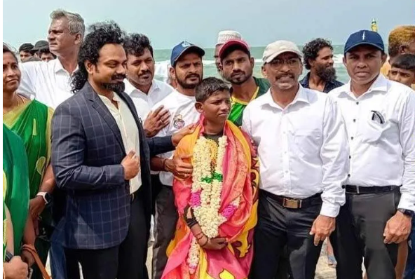 13 வயதான திருகோணமலை இந்துக் கல்லூரி மாணவன் ஹரிகரன் தன்வந்த் தனுஸ்கோடியில் இருந்து தலைமன்னார் வரையான பாக்கு நீரினையை கடந்து சாதனை படைத்துள்ளார்.