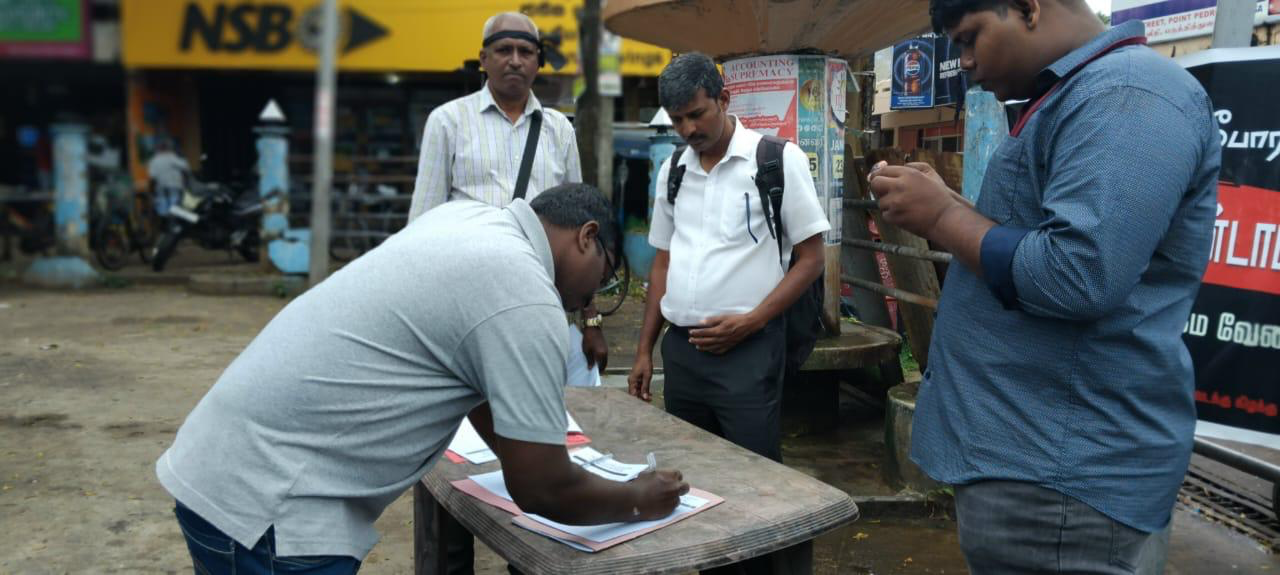கடந்த 14 ஆம் திகதி திருகோணமலையில் ஆரம்பிக்கப்பட்டு வரும் 25 ஆம் திகதி வரை முன்னெடுப்பட்டு வரும் இப்போராட்டத்திற்கு வலுச்சேர்க்கும் வகையில் இன்றைய தினம் (21) வடமராட்சியில் பருத்தித்துறை, நெல்லியடி நகரங்களில் கையெழுத்து போராட்டம் முன்னெடுக்கப்பட்டிருந்தது. இதன்போது பொதுமக்கள், பொது அமைப்புகளின் பிரதிநிதிகள், உள்ளூராட்சி மன்ற உறுப்பினர்கள், அரசியல் கட்சியினர் என பலரும் ஆர்வத்துடன் கையொப்பங்களை இட்டு வலுச்சேர்த்திருந்தமை குறிப்பிடத்தக்கது.
