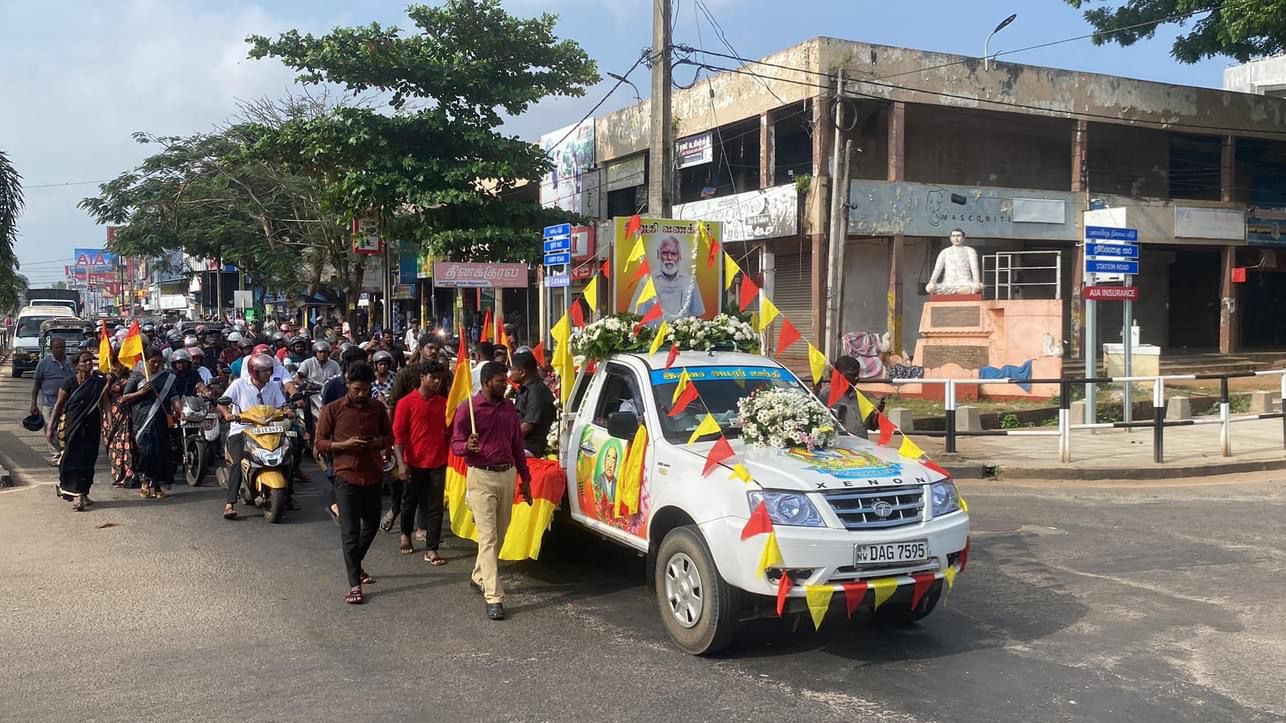 இதனைதொடர்ந்து காலை 9 மணிக்கு மாங்குளத்திலும், காலை 10.30 இற்கு கிளிநொச்சியிலும் தொடர்ந்து 11.30 இற்கு இத்தாவில் பகுதியில் அஞ்சலிக்காக வைக்கப்பட்டு,கொடிகாமம் ஊடாக பூதவுடல் எடுத்துச்செல்லப்பட்டு பிற்பகல் 2 மணிமுதல் வல்வெட்டித்துறை தீருவிலில் பொதுமக்களின் இறுதி அஞ்சலிக்காக வைக்கப்படவுள்ளது.